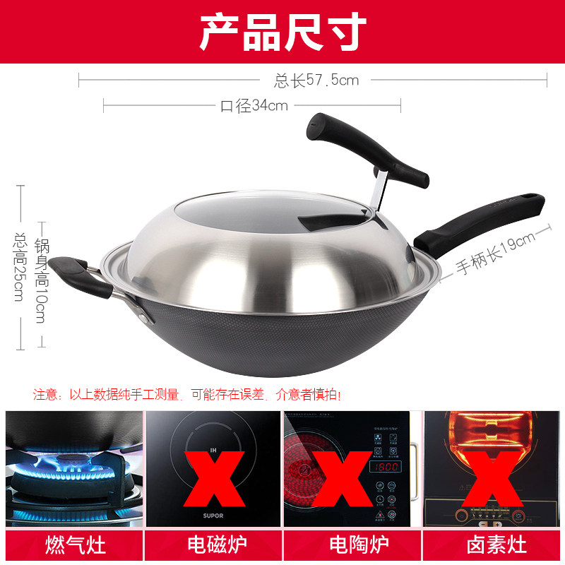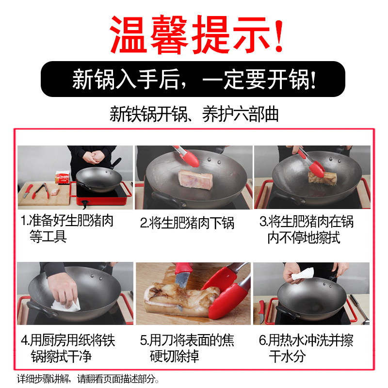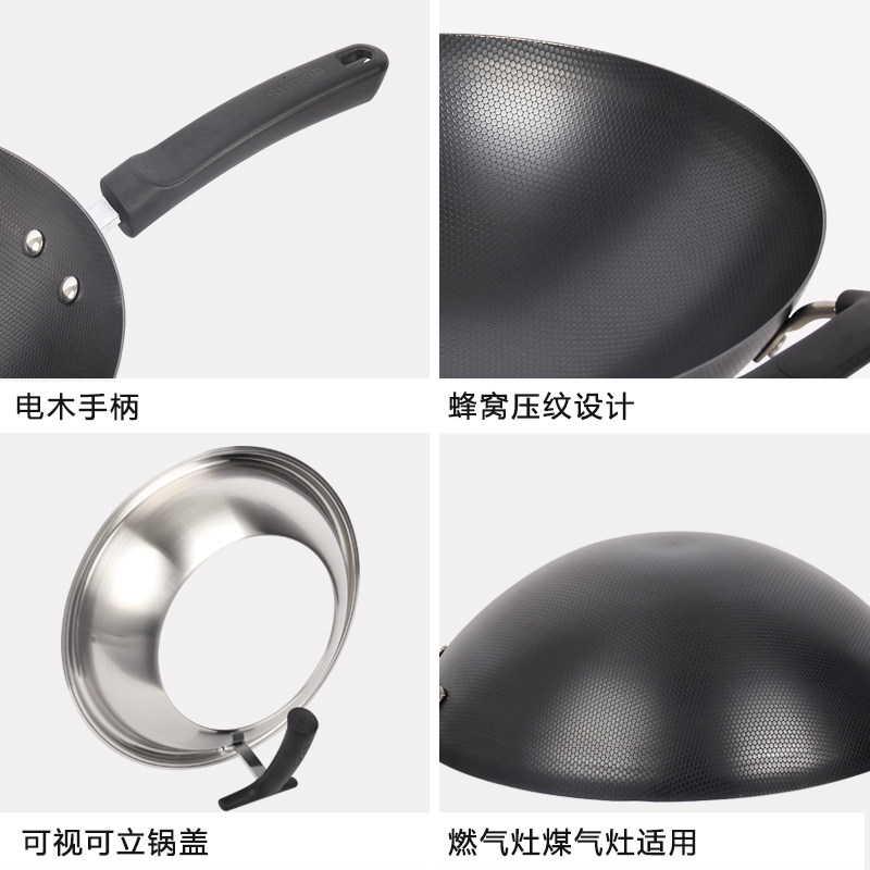 Supohl frying pan tip round bottom anti-rust iron pan domestic frying pan without coating gas stove applicable 32 34 36cm