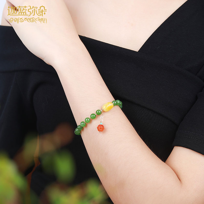 Xinjiang spinach green and Tian jade beeswax hand-female girlfriends gift Russian natural jasper bracelet diy beads