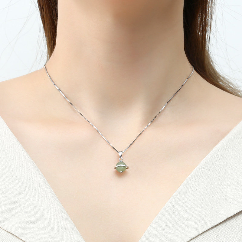 925 Sterling Silver Starry Sky Hetian Jade Necklace Female Net Red Japanese and Korean Ins Universe Star Jade Necklace for Girlfriend Gifts