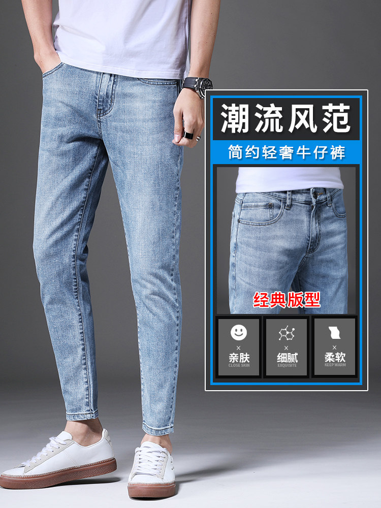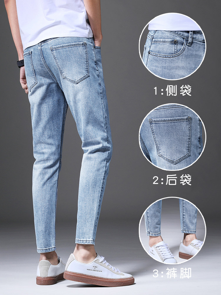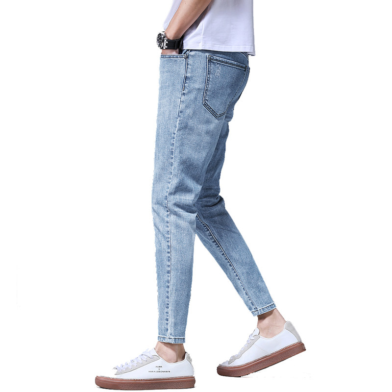 2023 Summer Jeans Men's Straight Hole Slim Pendant Korean Style Loose Trendy Casual Trousers Nine-point Pants