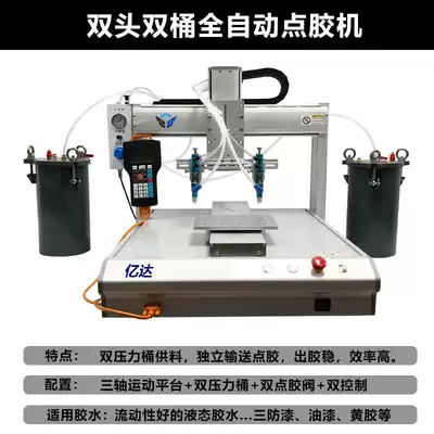 Automatic double-head water storage pressure bucket yellow glue white latex dispenser glue applicator glue machine three-axis platform glue spray machine