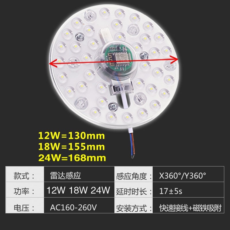 Ultra-bright LED ceiling lamp transformation plate acoustic and optical control human radar sensing module Light source building garage
