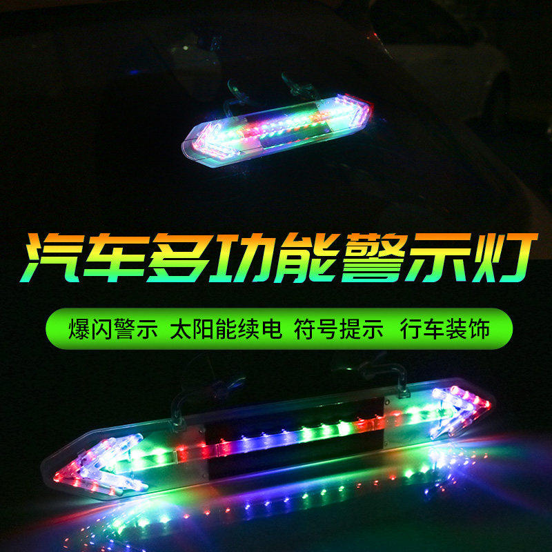 Car Solar Explosion Flashing Lights Solar anti-rear-end LED warning lights Double arrowheads Perak-Man light