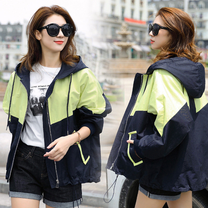 Spring and autumn frock coat female 2021 new Korean version loose bf student short jacket Harajuku casual hooded trench coat