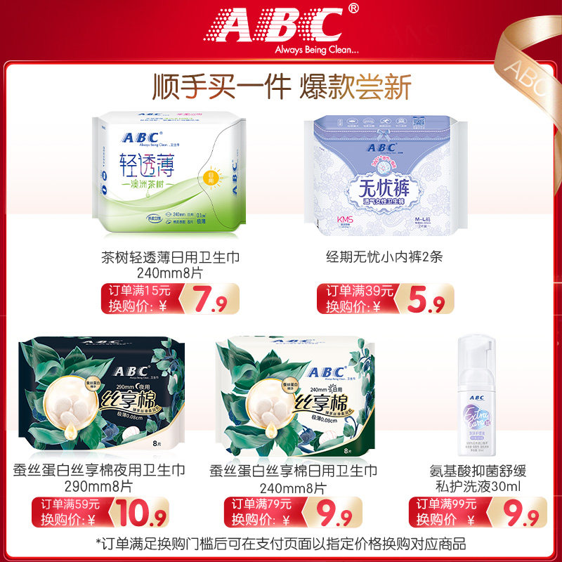 ABC sanitary cotton female Chinese cotton 190mm mini daily 8 packs aunt towel official flagship store official website