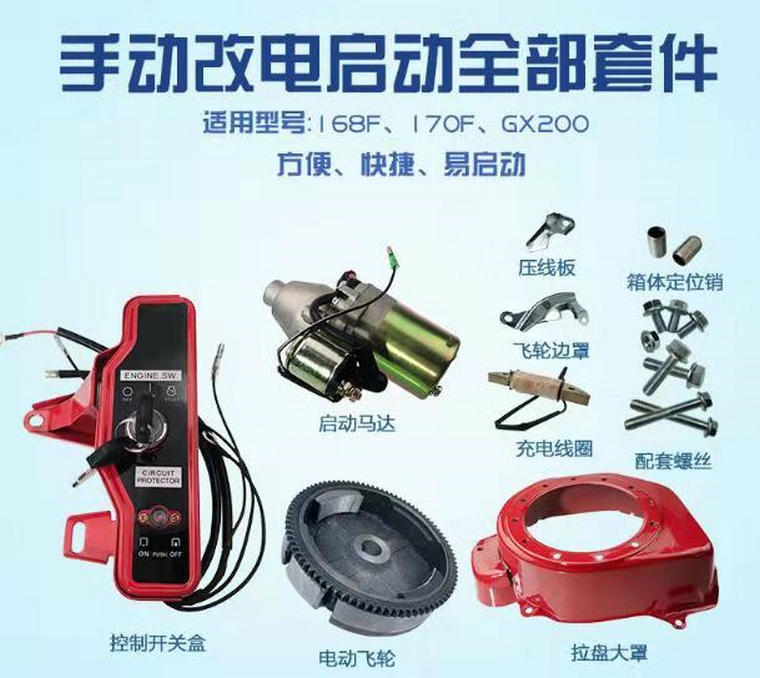 Petrol Engine Accessories 168F170FGX160 270 Engine Manual retrofit electric starter set