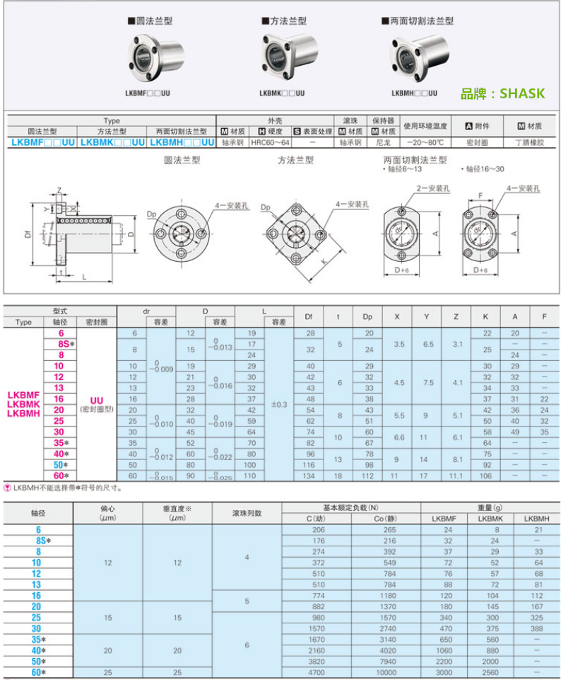 SHASK Automation Parts LKBMH6UULKBMH8UULKBMH10UULKBMH12UULKBMH13UULKBMH1