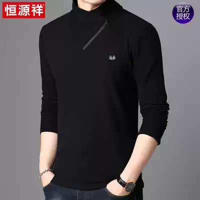 Hengyuanxiang 2019 autumn and winter New slanted V collar men long sleeve t-shirt young and Korean slim half high collar base shirt