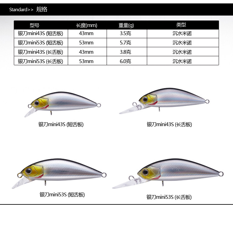 EWE Meixia mini silver knife mini submerged Mino far cast cocked mouth Luya bait perch mandarin fish horse mouth false bait