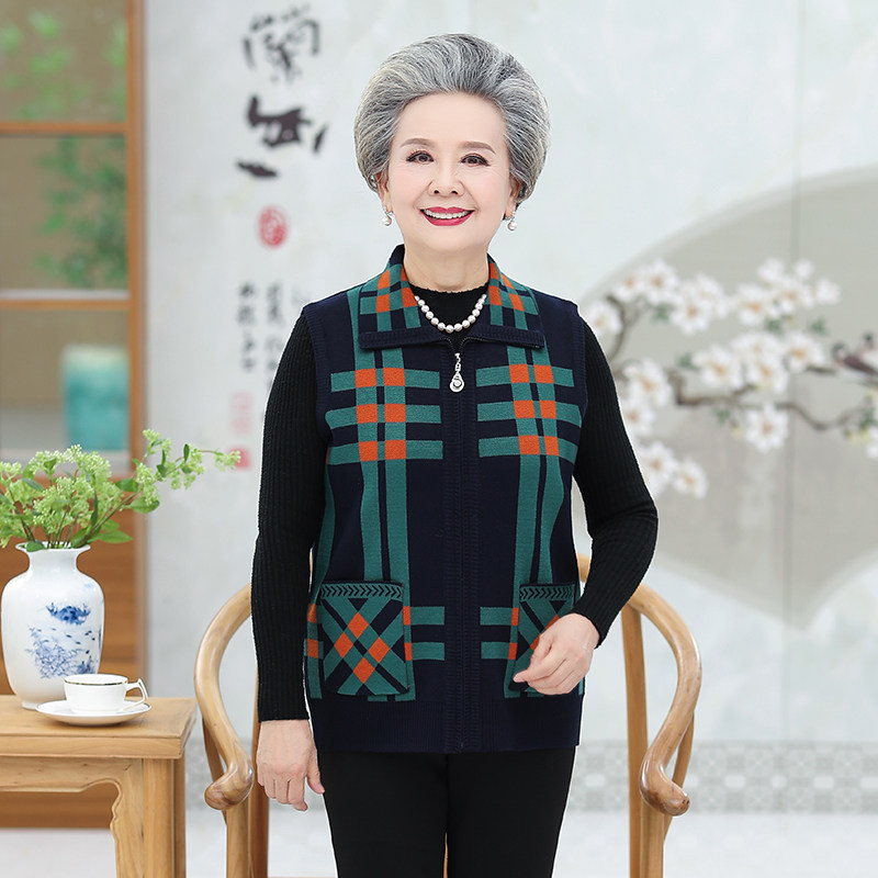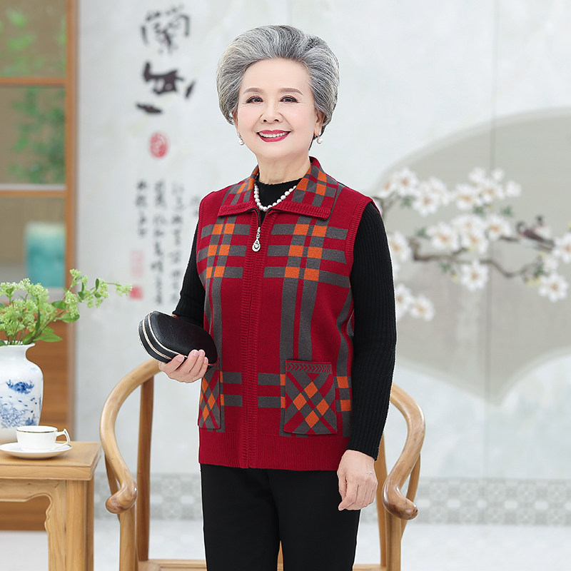 Grandma dressed in autumn vest vest 60 in 70 middle aged woman mother clamped open shirt old man clothes