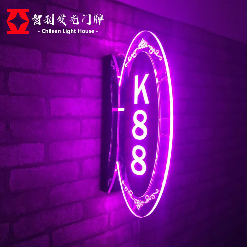 High-end Hotels LED Logo Clubhouse Bag Compartment With Light Cue Cards Acrylic Double-sided Luminous Gate License Plate Customised