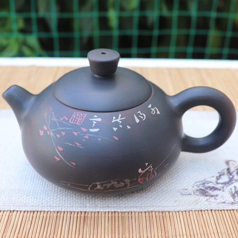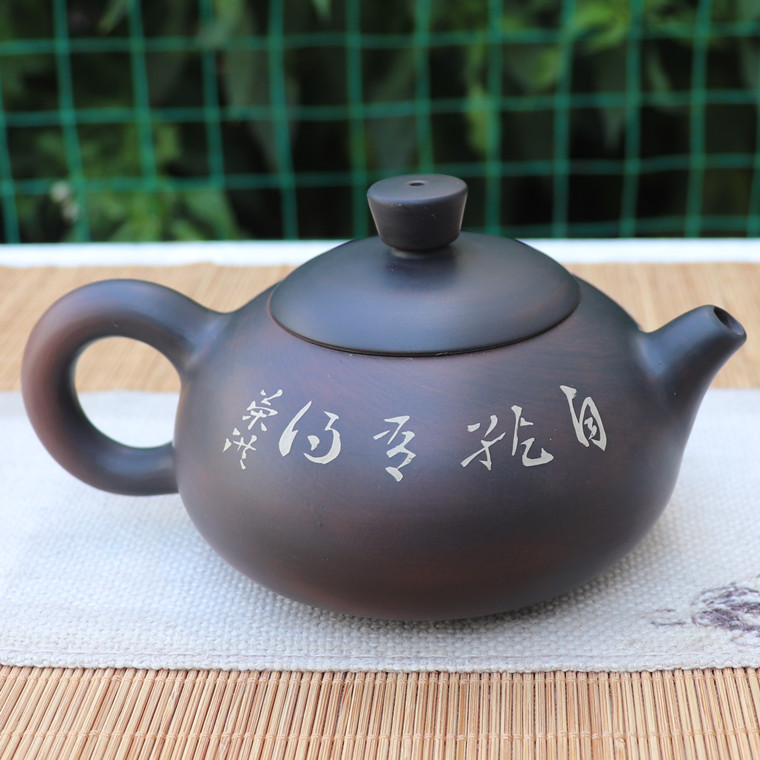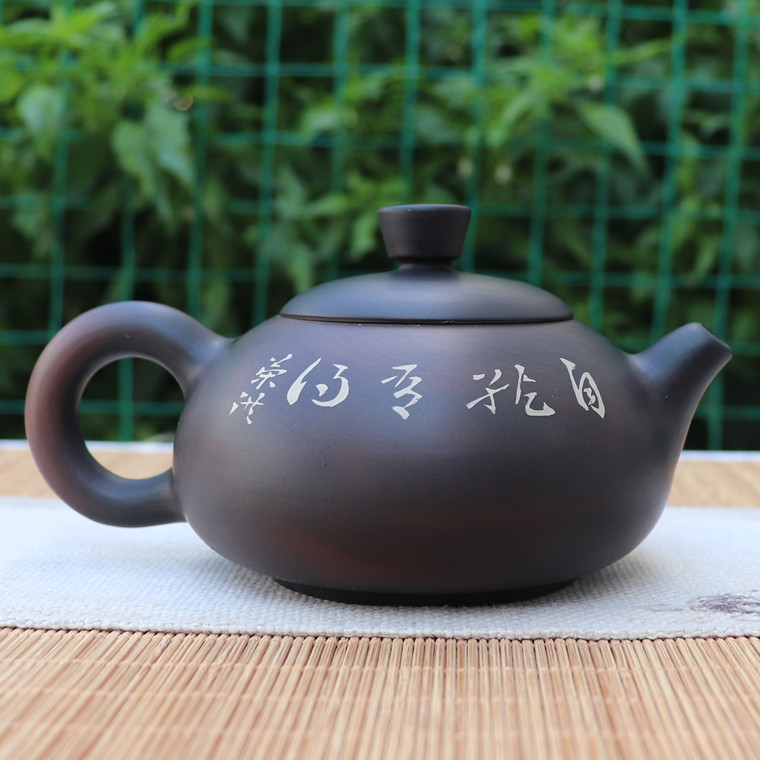 Yunnan Jianshui purple pottery teapot Jian pottery pot black pottery pot handmade pot famous master Xu Ronghong decorative handmade