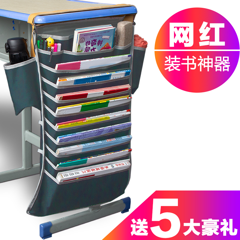 Primary reading with bookbag multi-function desk to include books artifacts in junior high school students classroom