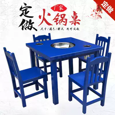 Solid wood hot pot table and chair set with horse roadside string incense hot pot table sunken induction cooker hot pot table and chair commercial