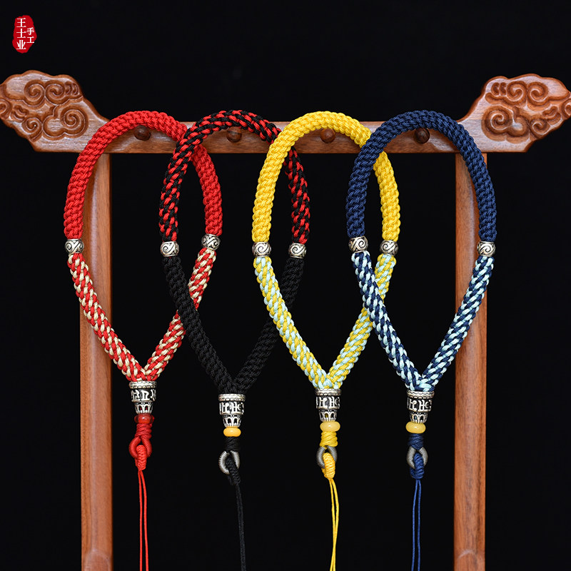 Custom car key rope special All sterling silver custom mobile phone lanyard special All sterling silver custom shortened version All sterling silver black and green with black as the main all sterling silver handle rope all red