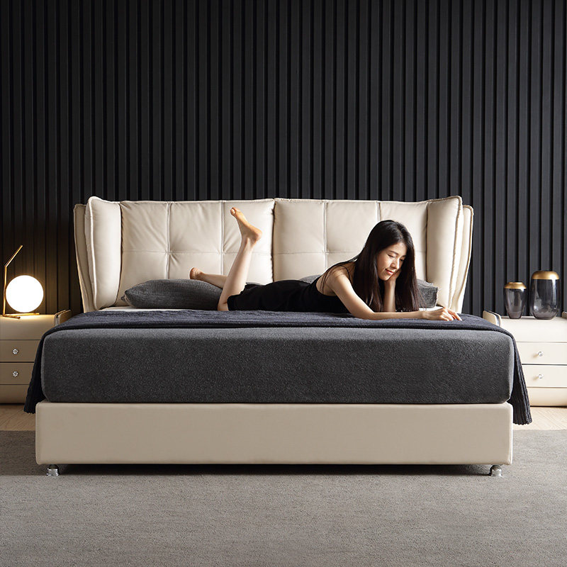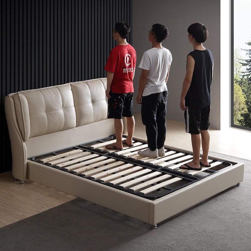 Genuine Leather Bed Coconut Palm Mattress Bed Head Cabinet * 1 Dermis Bed Latex Mattresses Bed Head Cabinet * 2 Dermis Bed Latex Mattresses Italian minimalist Napa genuine leather single bed Leather Bed Coconut Palm Mattress bed