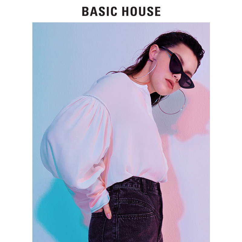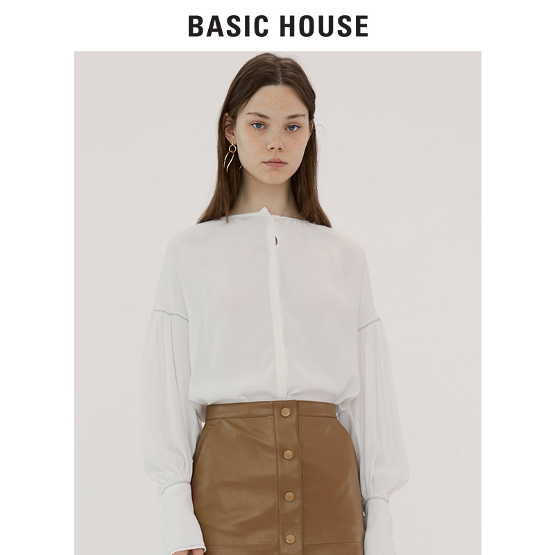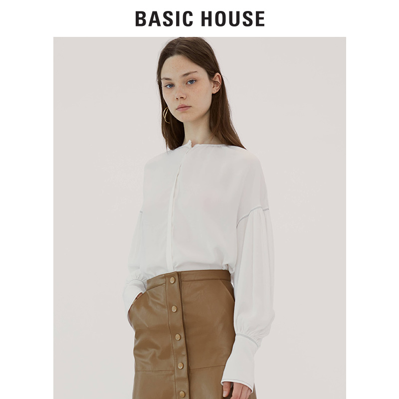 Basic House Hundreds Of Good Women's Clothing Mall with the same Spring and Autumn Lantern Lantern Sleeves buckle Long sleeves shirt HTBL522C