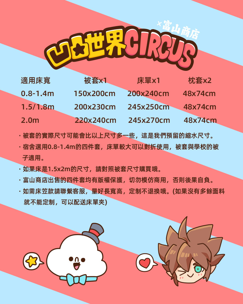 (Toyama Shoten x Bump World) An Mi Xiu Happy Circus Dormitory cotton bed four-piece set