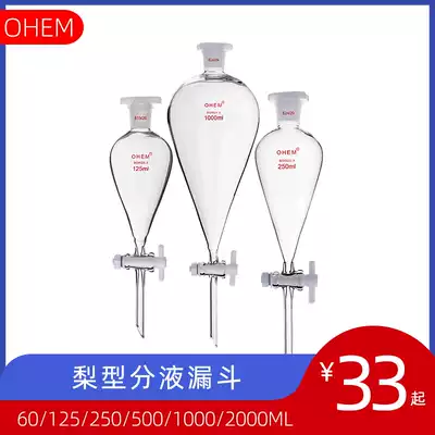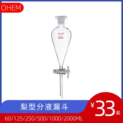 OHEM pear-shaped separatory funnel 60 125 250 500 1000 2000ml High Borosilicate thickened glass pear drip funnel rack PTFE