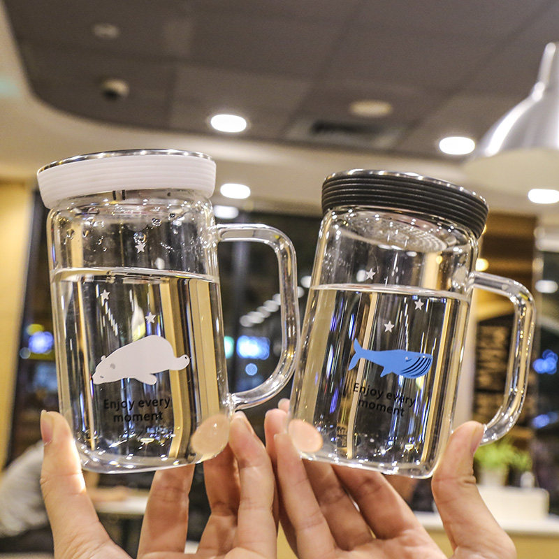 Korean version of cute girl glass cup office with tea filter filter handle cup student health tea cup female