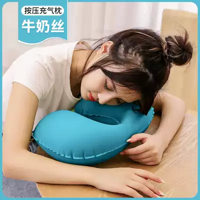 Inflatable U-shaped pillow can store students nap, press-type cervical pillow travel for men and women portable pillow