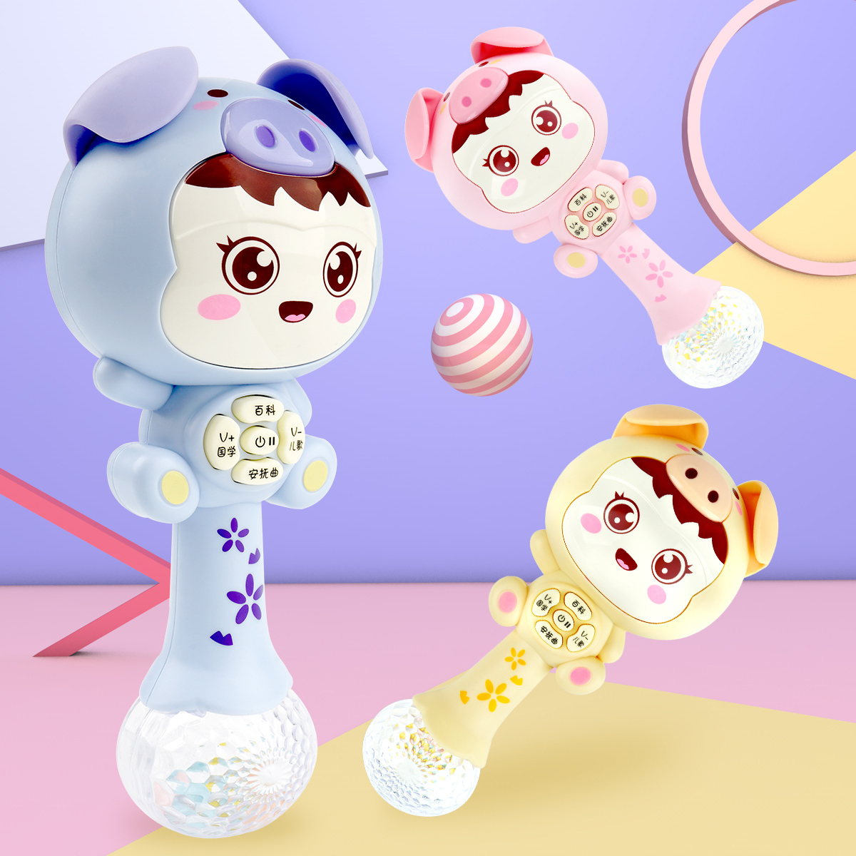 Cute little pig-powder cute piglet-blue cute piggy-yellow piglet hammer-powder soft glue rocking a bell ball small pig hammer-Blue soft glue rocking a bell ball small pig hammer-yellow soft glue rocking a bell ball small pig hammer