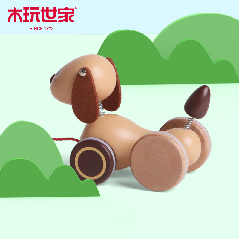 Wooden play family drag small zoological step toy Pull car Baby children hand pull rope pull line toy Children's toys