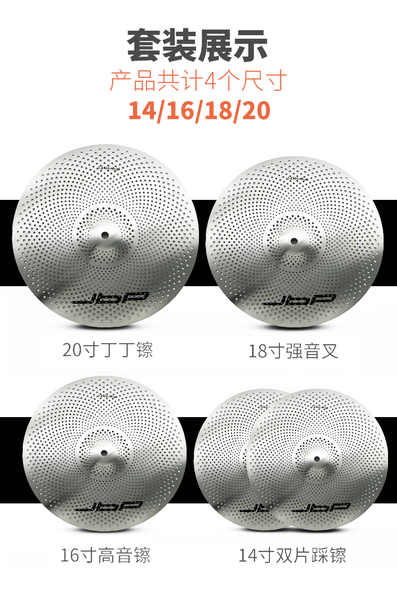 Silver four cymbals 14X2 16 18 20 (send drum key silicone silencer pad)