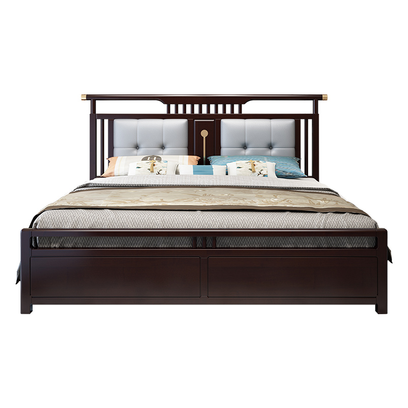 New Chinese solid wood bed 18 meters light luxury storage high box 15 wood bed modern soft master bedroom simple double wedding bed