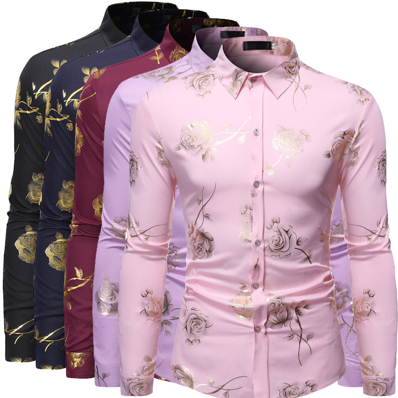 Loose 2020 autumn men's casual bronzing printed inch shirt Men's long-sleeved white long-sleeved shirt Korean version of the trend