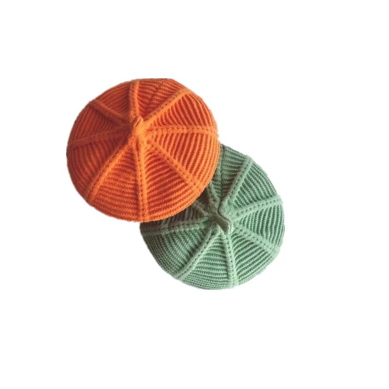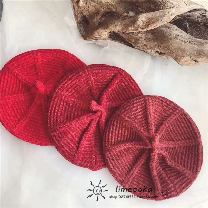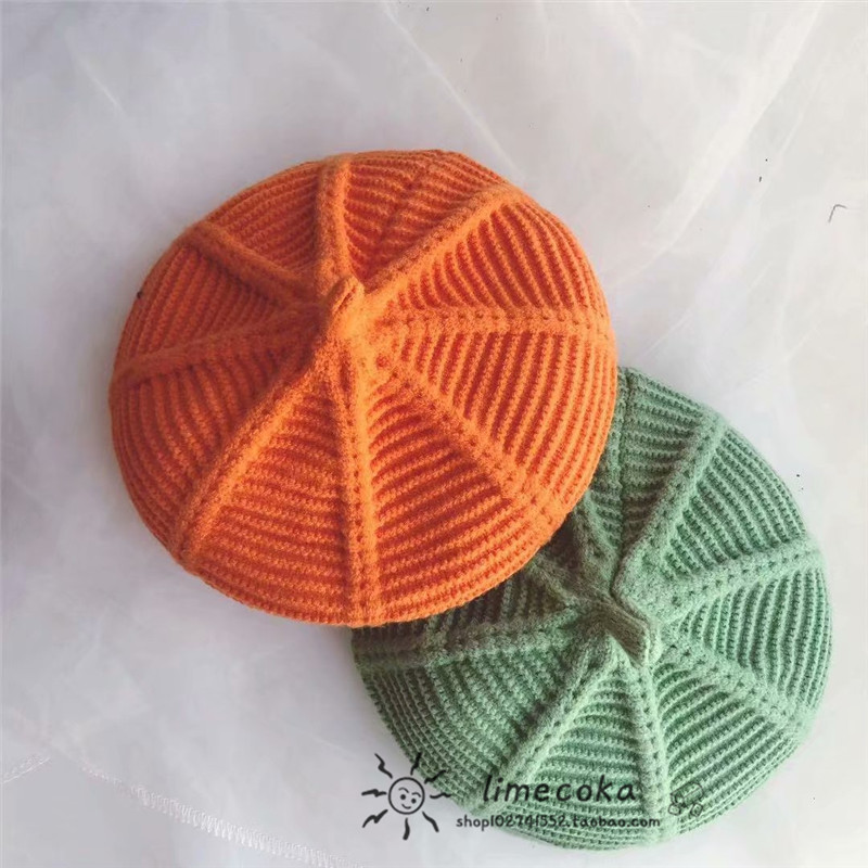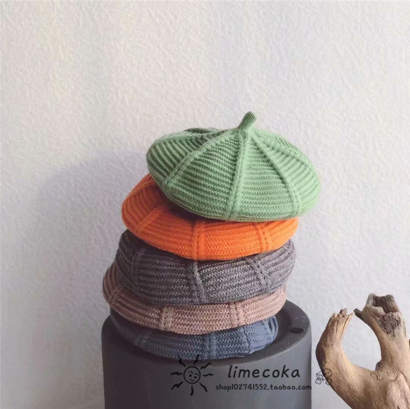 Autumn Winter New Brief Bright Color Ensemble with Core Yarn Children Knit Berets-Taobao
