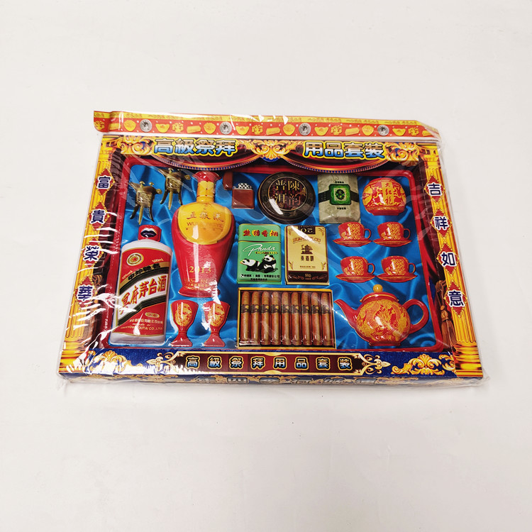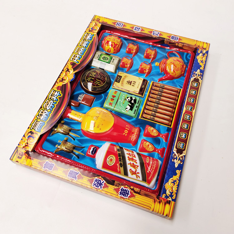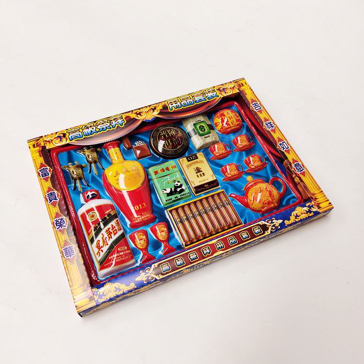 Sacrifice coin tin foil paper, tobacco, wine, tea, blister set, tomb burning paper, ancestor worship, yen treasure, Qingming