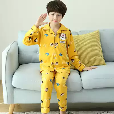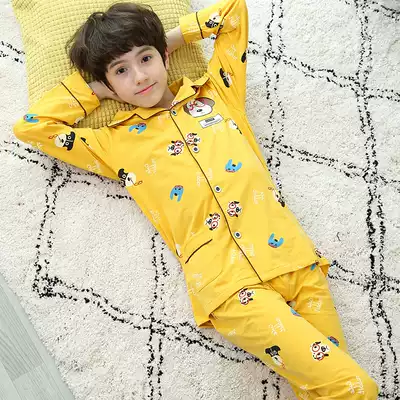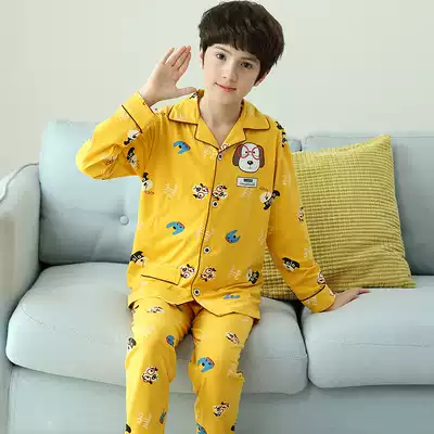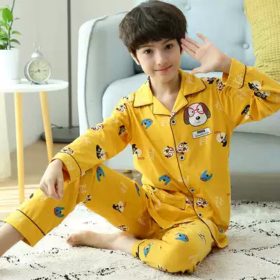 Children's pajamas thin long sleeves spring and autumn cotton boys summer boys 10 middle and big children 12 summer 15-year-old set