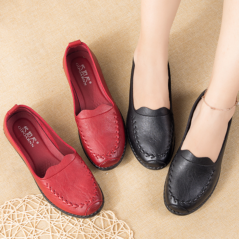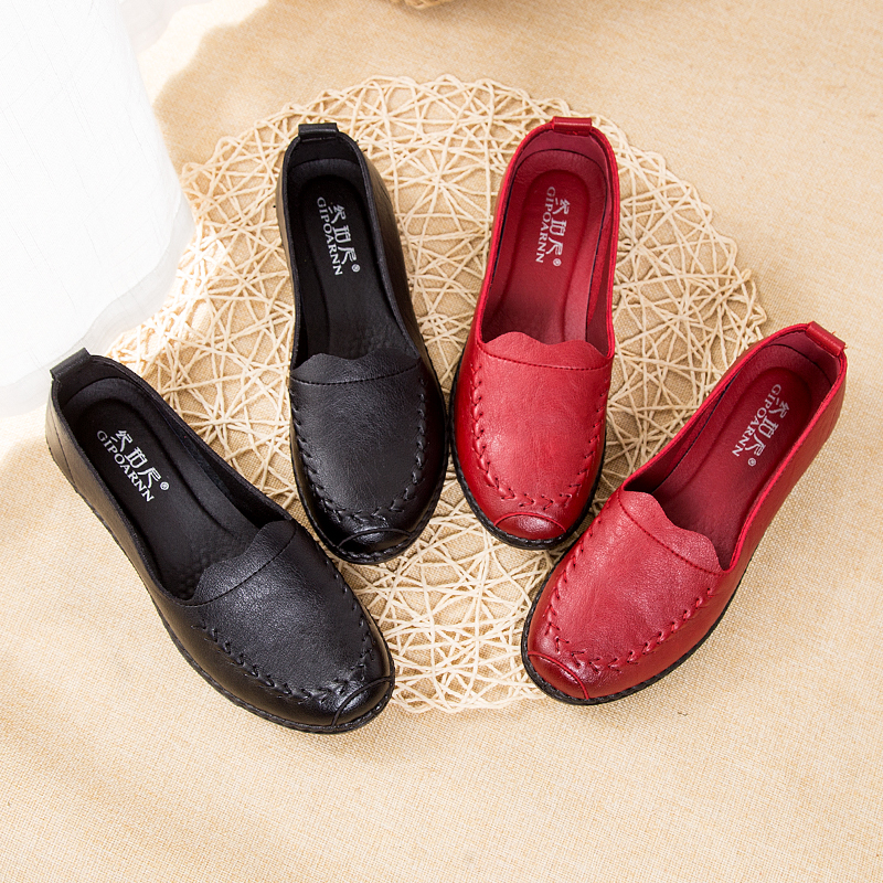 Mom Shoes Softbottom Single Shoes Middle Aged Women Shoes Comfort Light Grandma Non-slip Middle Flat Leather Shoes Spring Autumn Leather