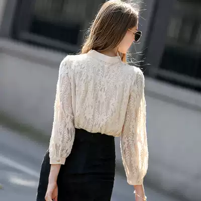 Long sleeve lace top female 2021 early autumn new foreign style thin collar chiffon shirt shirt bow base shirt