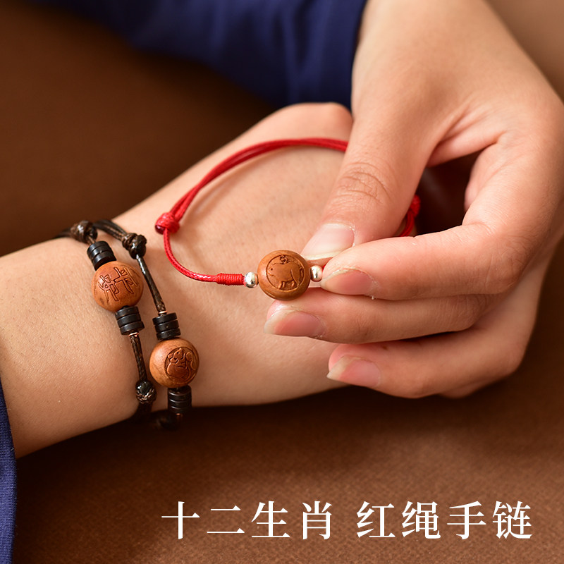Year of the Tiger, peach wood, nuclear hand, red rope, Zodiac, cattle, rabbit, baby, baby string