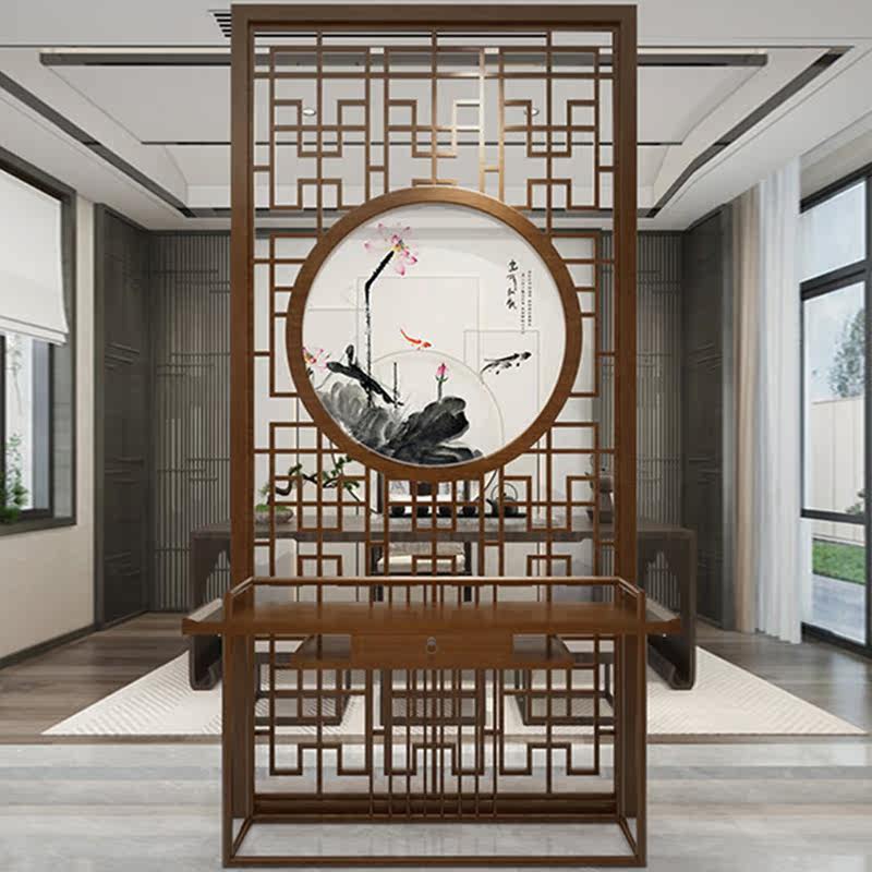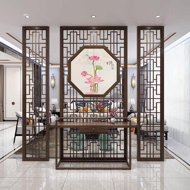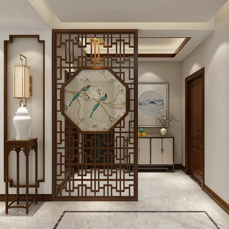 New Chinese Screen Partition Wall Living Room Entrance into the family Xuanguan Solid wood Fence Hollowed-out Modern Office Decoration Custom