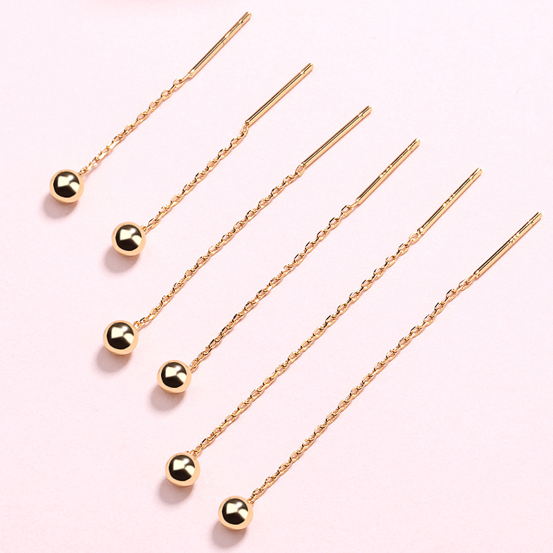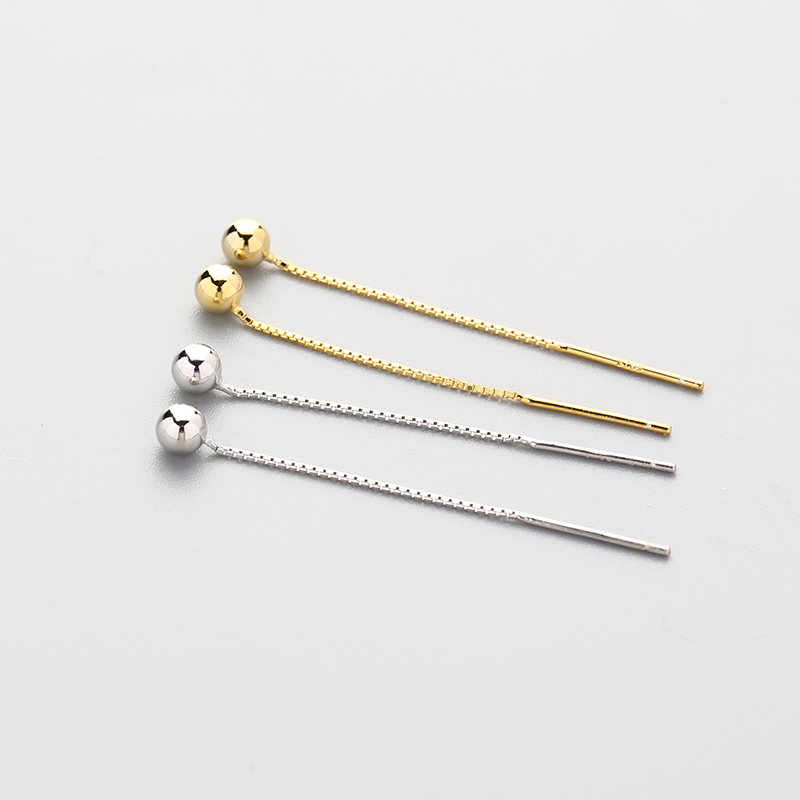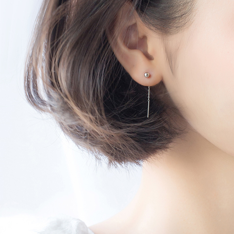 Shiwei Short Ear Chain S925 Sterling Silver Ear Chain Round Bead Silver Bean Ear Chain Simple Ear Hole Sterling Silver Earrings Women