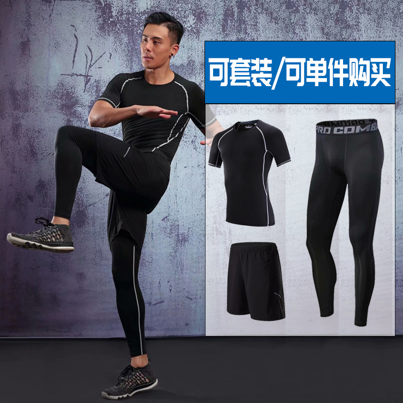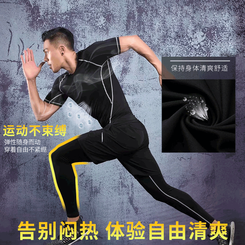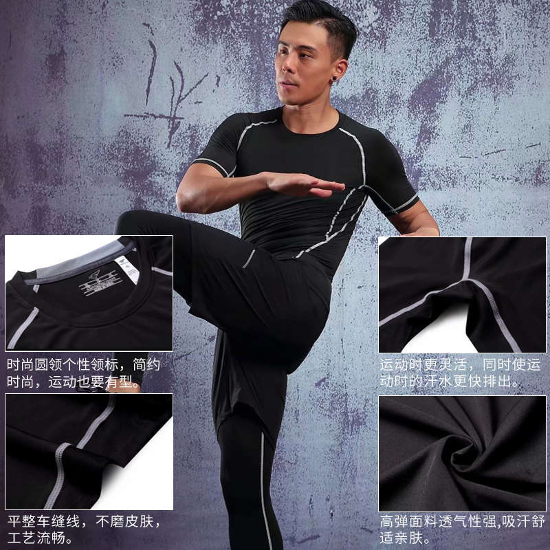 Sports Tight Clothing Suit Men Short Sleeve Sweat and breathable Running Fitness Football Training Sports Tight Clothing