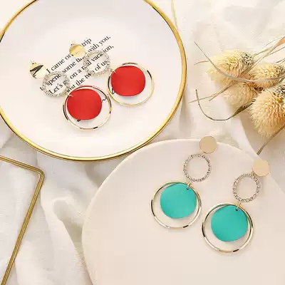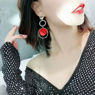 925 silver needle fashion exaggerated ring ring earrings Korean temperament long version of net red earrings earrings earrings no earrings female