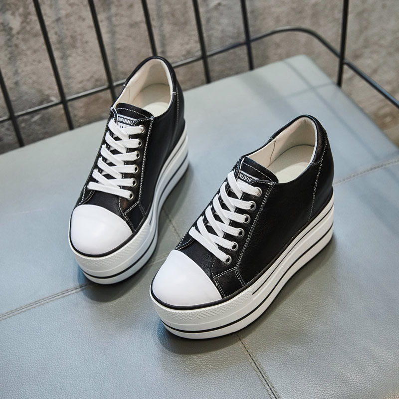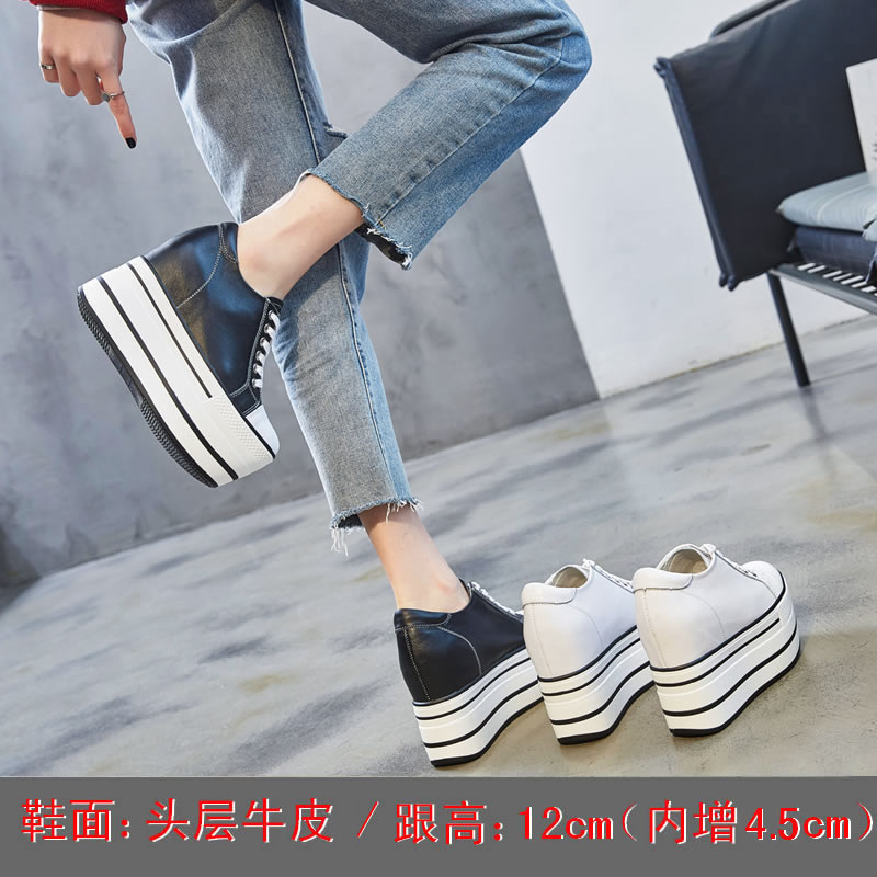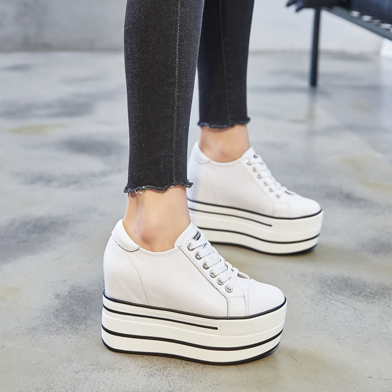 Inside heightening 12cm women shoes Slim Ultra High Heel Genuine Leather Small White Shoes Thick Bottom Pine Pastry Laces Hate Days High Casual Bag Shoes