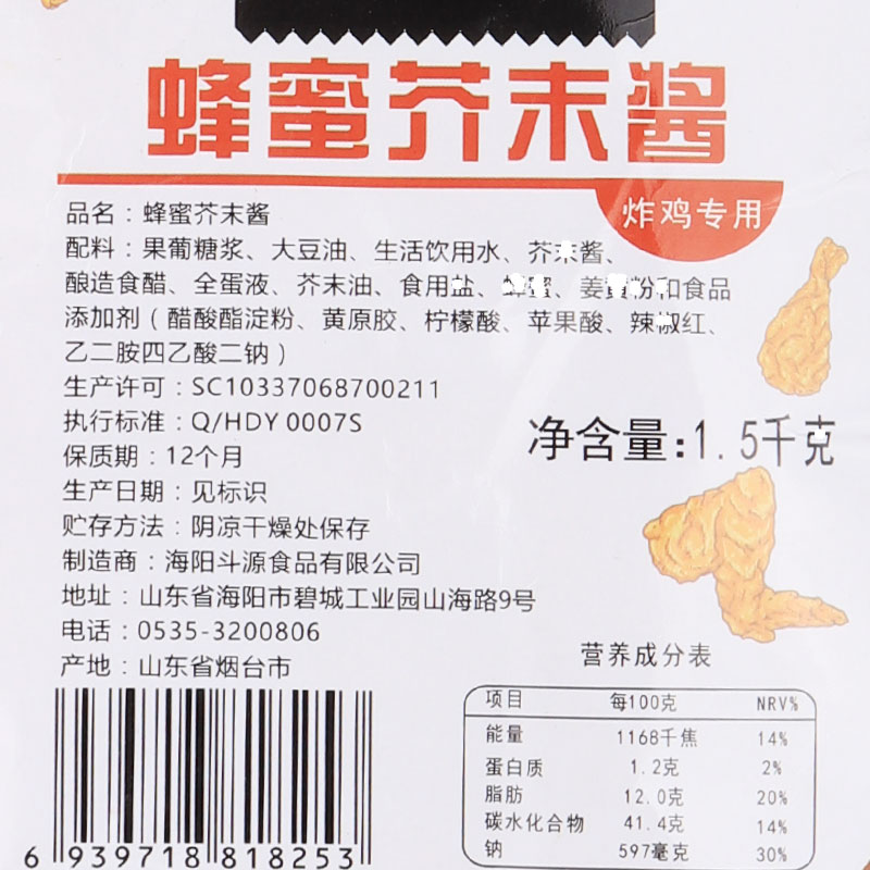 Korean Flavor Fighting Source Honey Mustard Sauce Salad Sauce Han Style Fried Chicken Sauce Wrap 1 5kg-Taobao