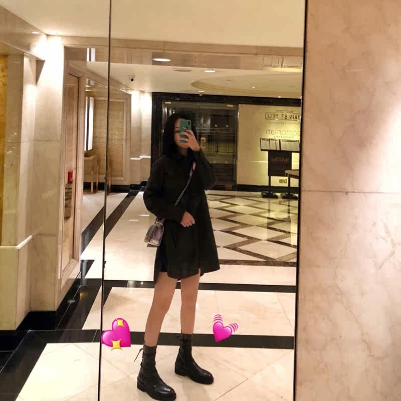 Ann back straps mid-barrel leather Martin boots 2022 winter dark vintage chunky heel boots side pull-up fashion women's boots