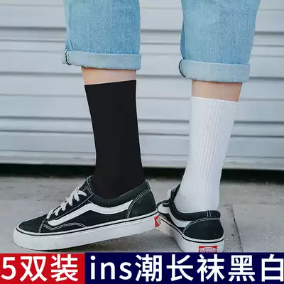 Socks women tube stockings men's black ins-music of the tide stockings Autumn white cotton socks female high-waisted high socks