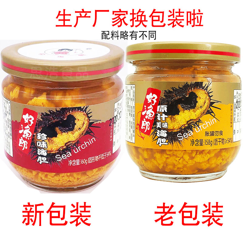 Haoyulang canned sea urchin Ready-to-eat Dalian specialty sea urchin sauce Original juice Sea urchin yellow sashimi seafood aquatic products 160g