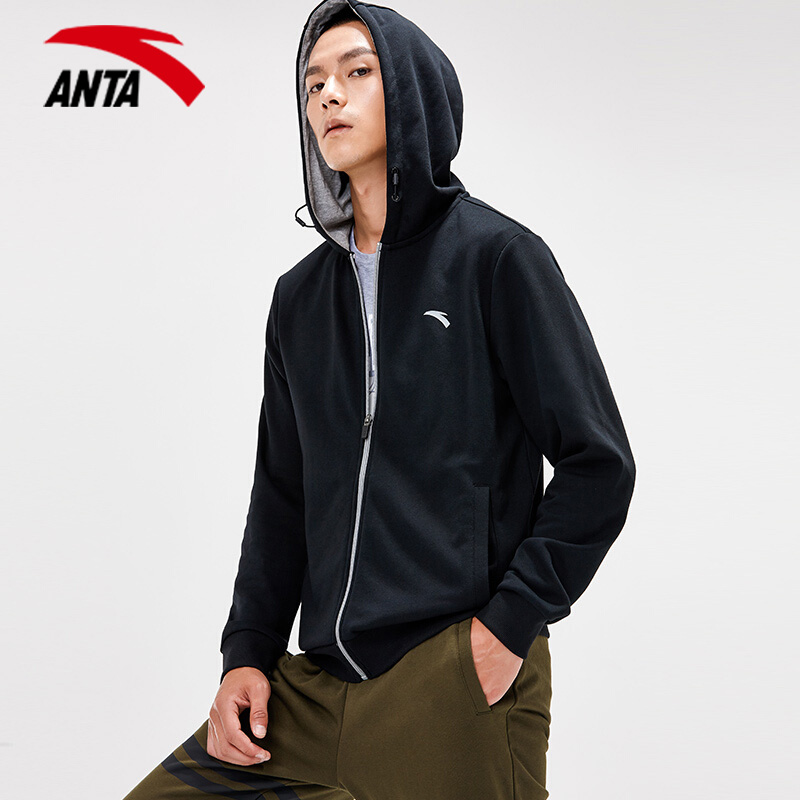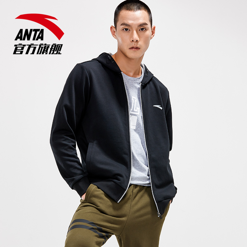 Anta jacket men hooded 2021 new spring and autumn cardigan thick cotton T spring official website flagship men's sports top men