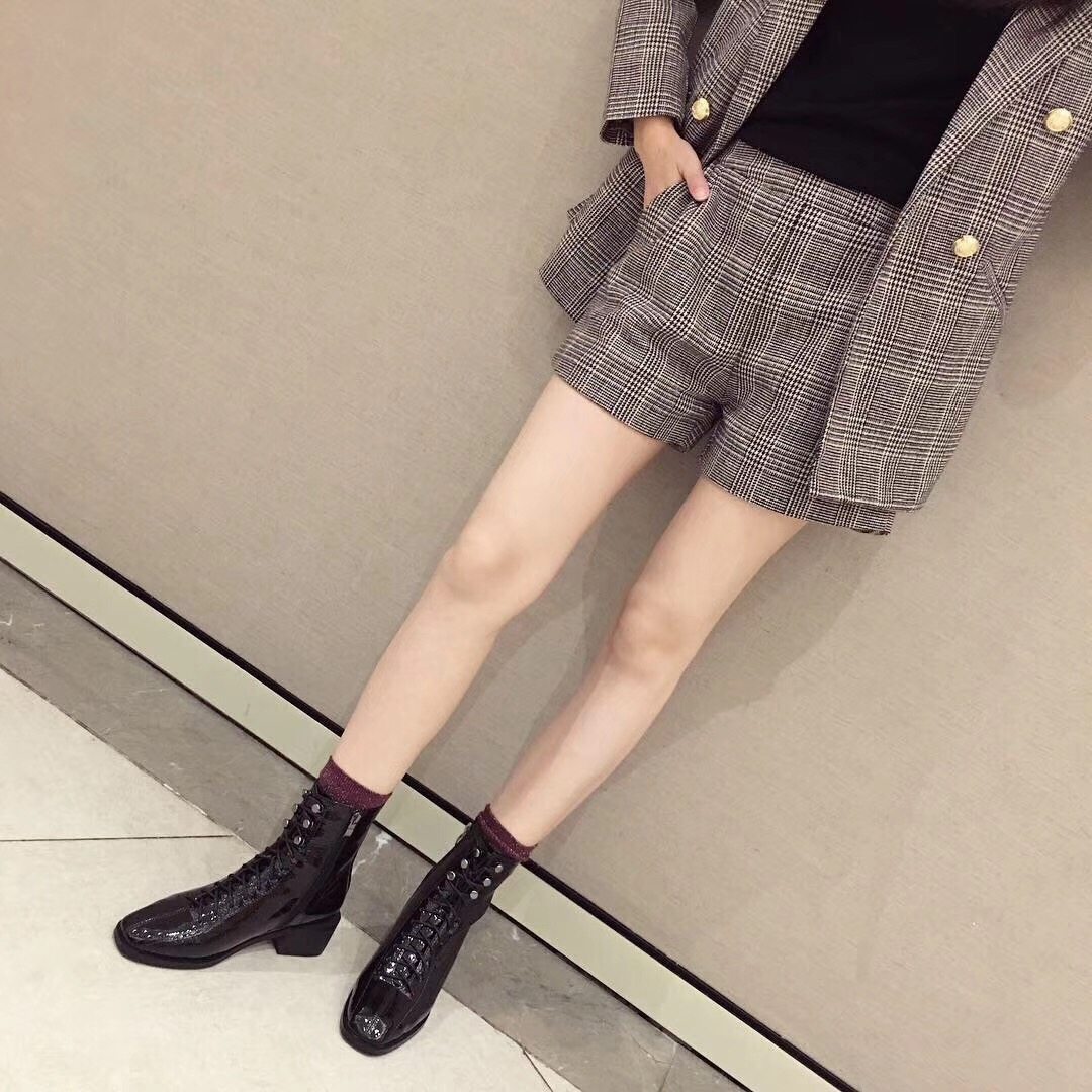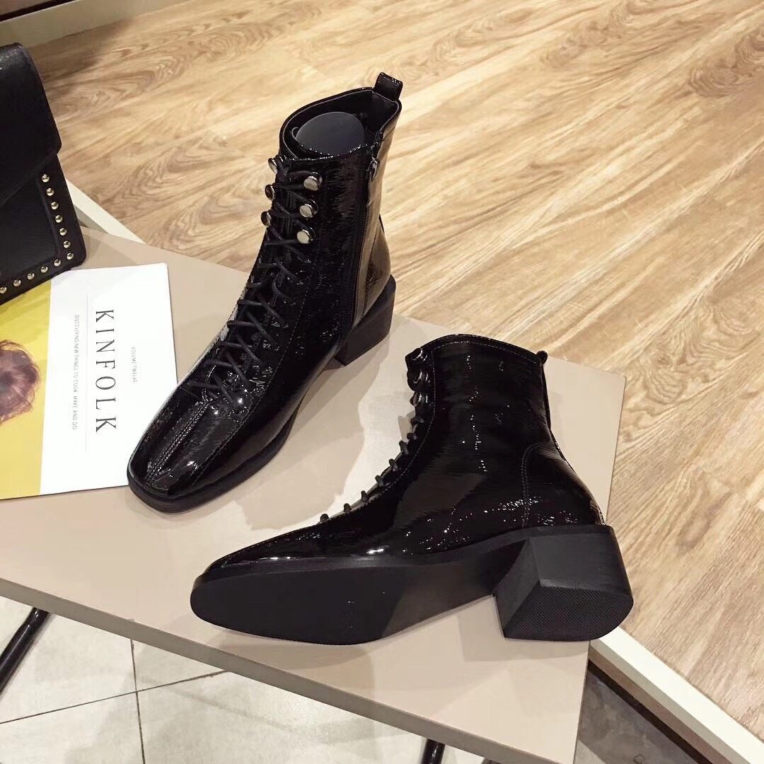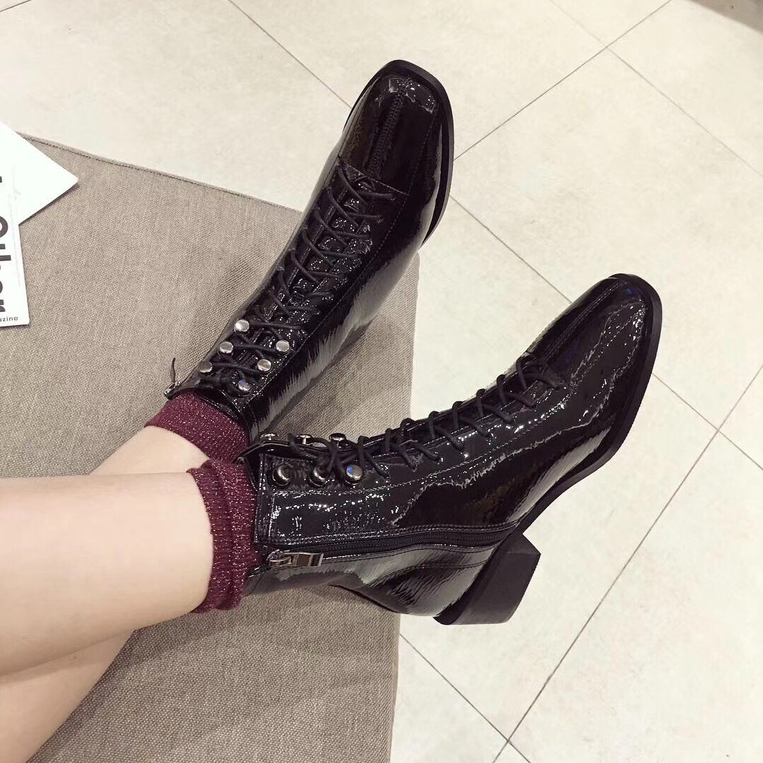 Tide brand 2023 autumn and winter new black patent leather chic Martin boots women's British style bright leather flat heel ins short boots tide