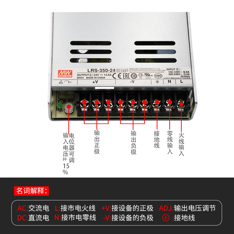 Minweft LED switching power supply 24v350wLRS-350-24 AC transfer DC transformer 220 turns 12v