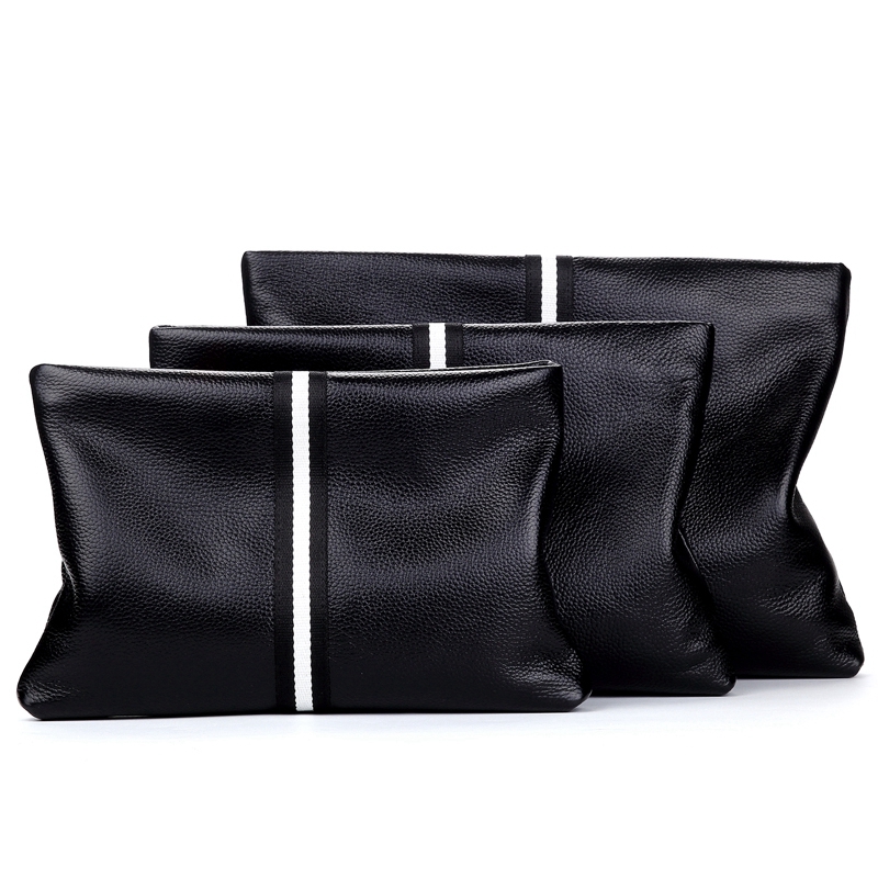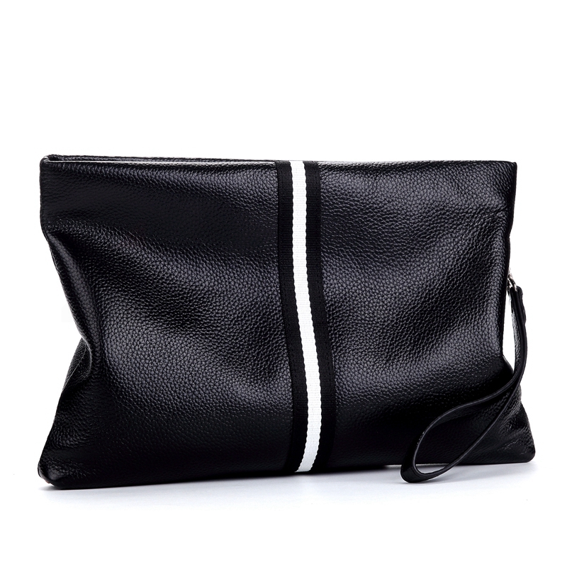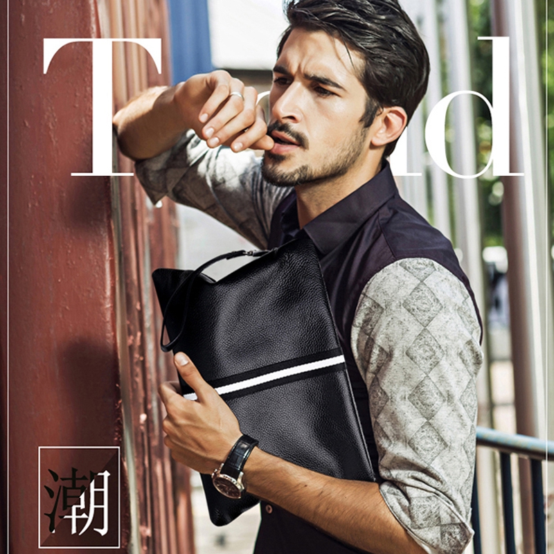 Men's dermis Handbags Han version Bull Leather Soft Leather Large Capacity Business Casual Stripes Upscale Male handbags Hands Grab-Taobao