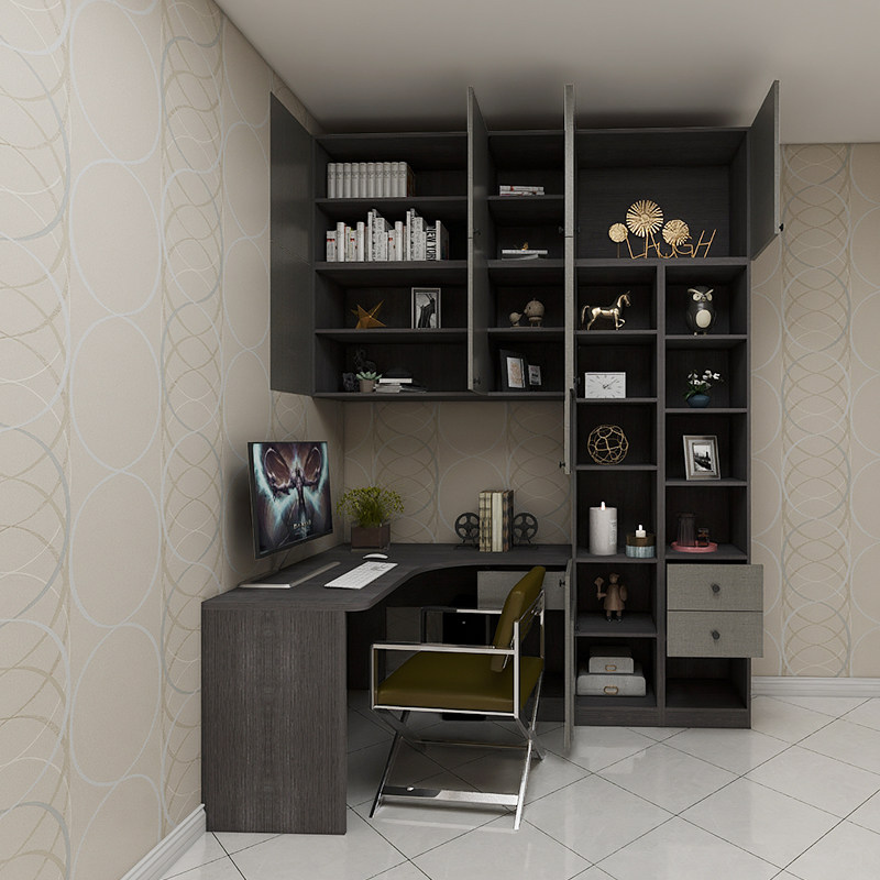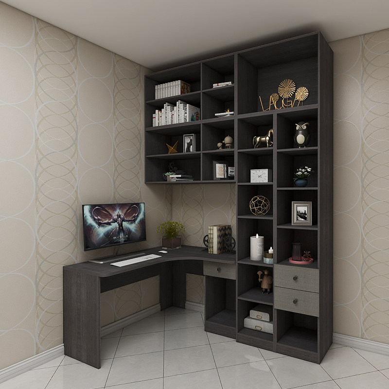 Konos Home corner desk Bookcase combination table with bookshelf L-type home computer desk Corner desk